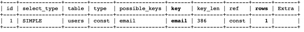 EXPLAIN SELECT * FROM users WHERE email = 'user@gmail.com';