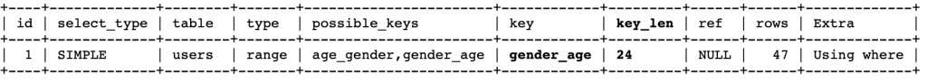 EXPLAIN SELECT * FROM users WHERE age <= 29 AND gender = 'male';